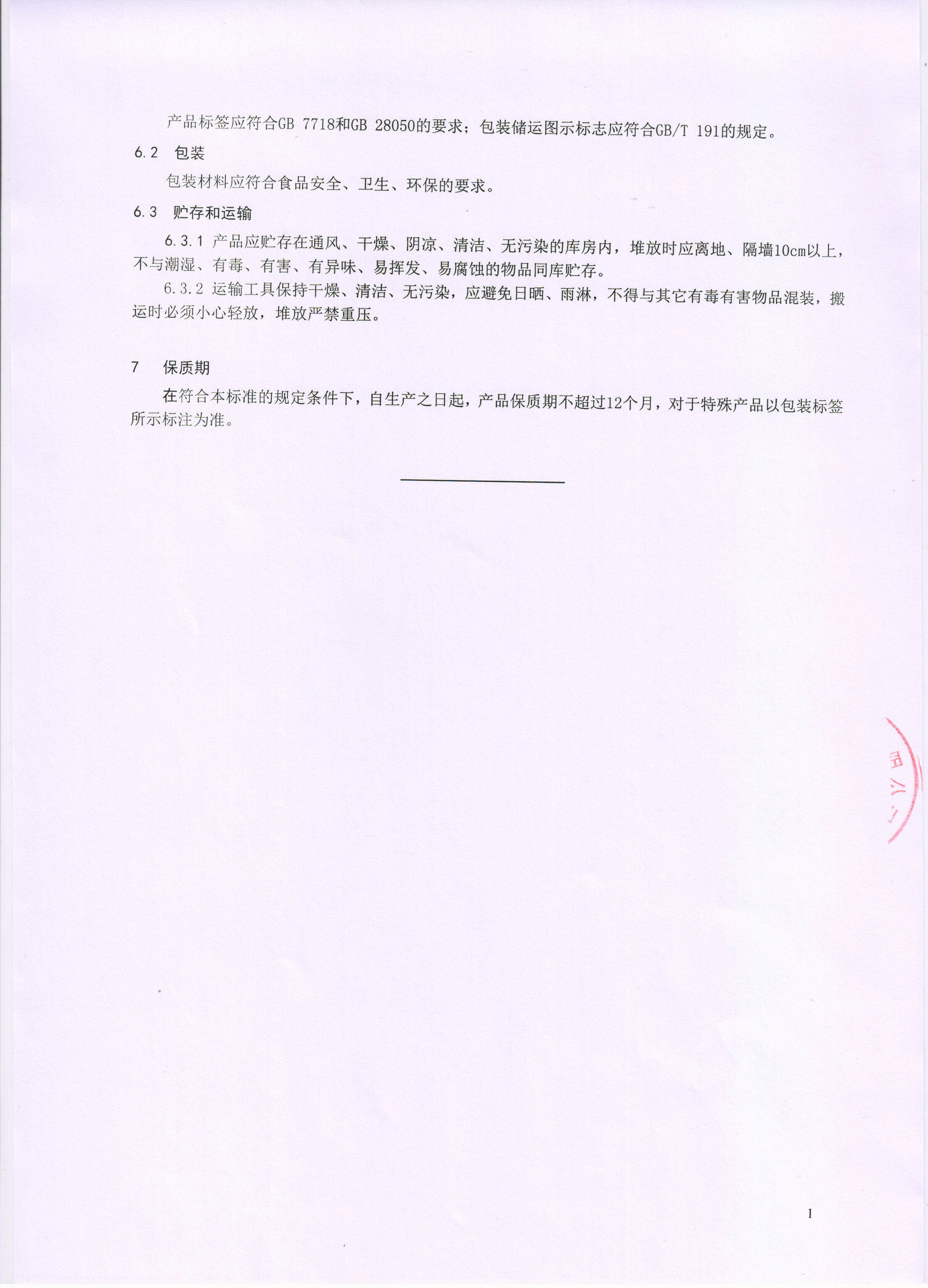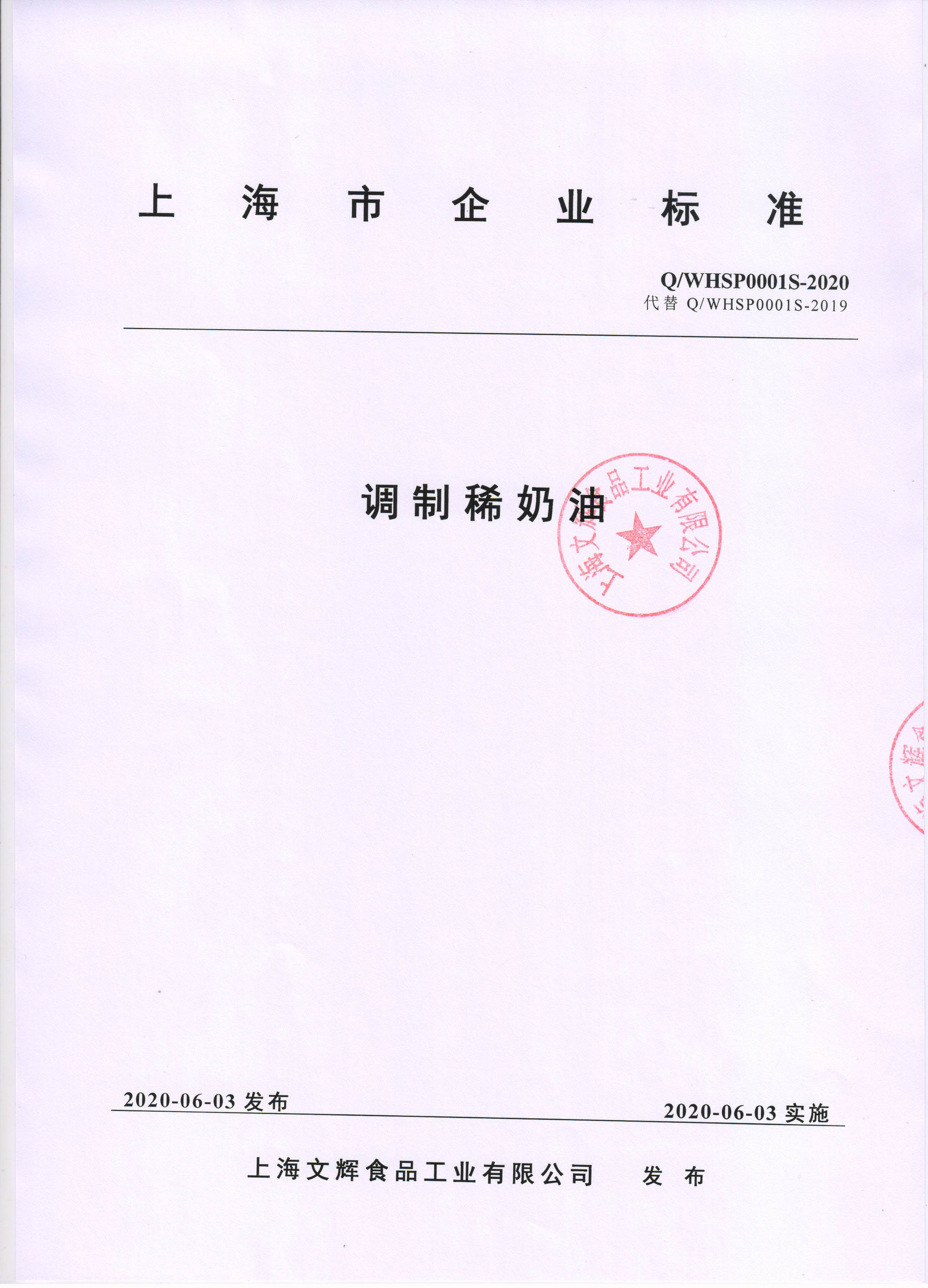 上海文輝食品工業(yè)有限公司企業(yè)標準